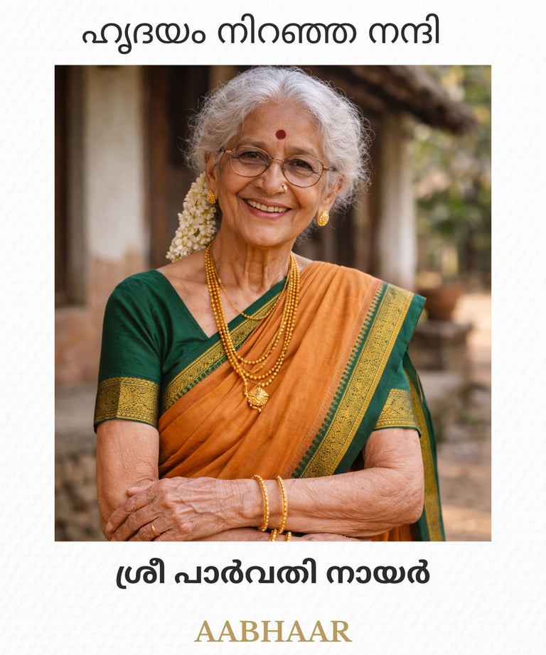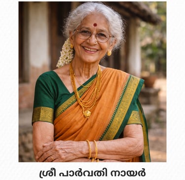 കേരളത്തിലെ പത്ത് കൊച്ചുമക്കളുടെ അമ്മമ്മ. ഭരതനാട്യത്തോടും പാചകത്തോടും ഉള്ള സ്നേഹത്തിലൂടെ സൗമ്യതയും സൗന്ദര്യവും നിലനിർത്തുന്ന ഒരാൾ.